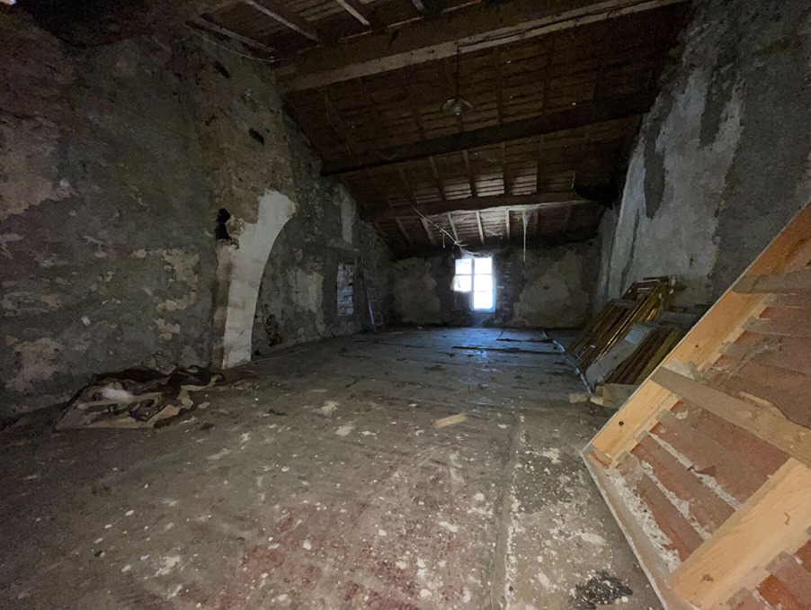 À l'étage, vous trouverez une véranda, une entrée avec coin cuisine, un séjour, deux chambres, et une salle d'eau avec toilettes. Les combles, situés au dernier niveau, sont exploitables et offrent un potentiel d'aménagement supplémentaire.